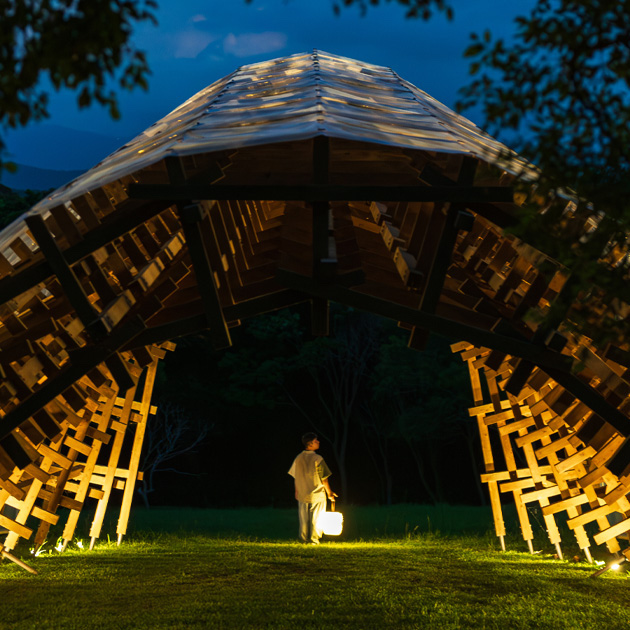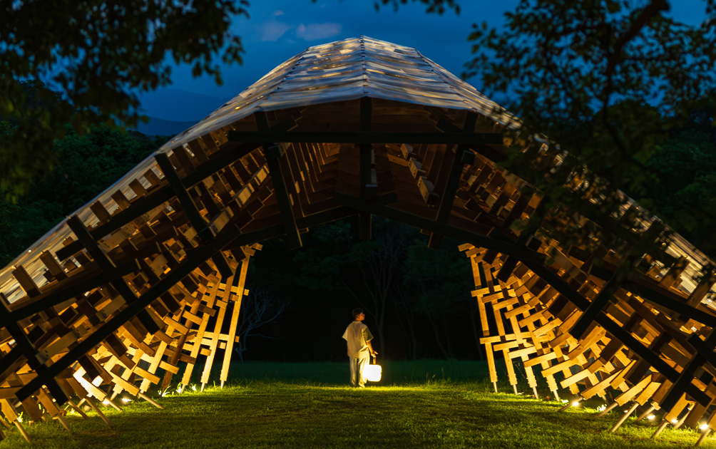 國際建築大師隈研吾以當地的九降風意象打造台灣首部作品 – 風檐。步隨著新竹晚風,提燃書燈,夜遊感受光影在藝術地景的無窮變化。